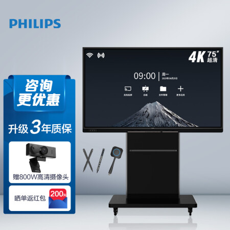 飛利浦智能會(huì)議平板 飛揚(yáng)版75英寸視頻會(huì)議一體機(jī) 4K觸摸屏電子白板 商用會(huì)議電視顯示器智慧屏 3352T支架版